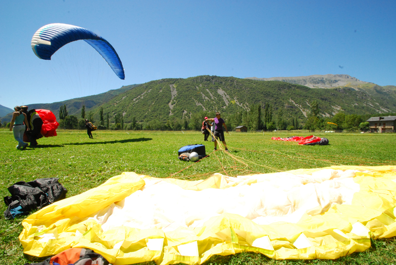Servicios disponibles: escuelas de parapente, empresas de turismo de aventura en los Pirineos, alquiler de material, vuelos biplaza y traslados a los despegues.