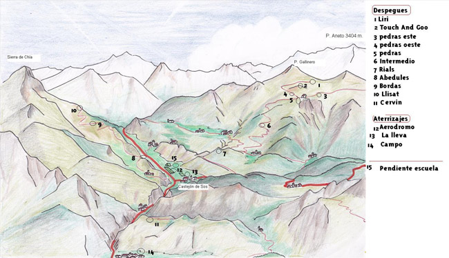 Mapa de despegues de parapente en Castejón de Sos