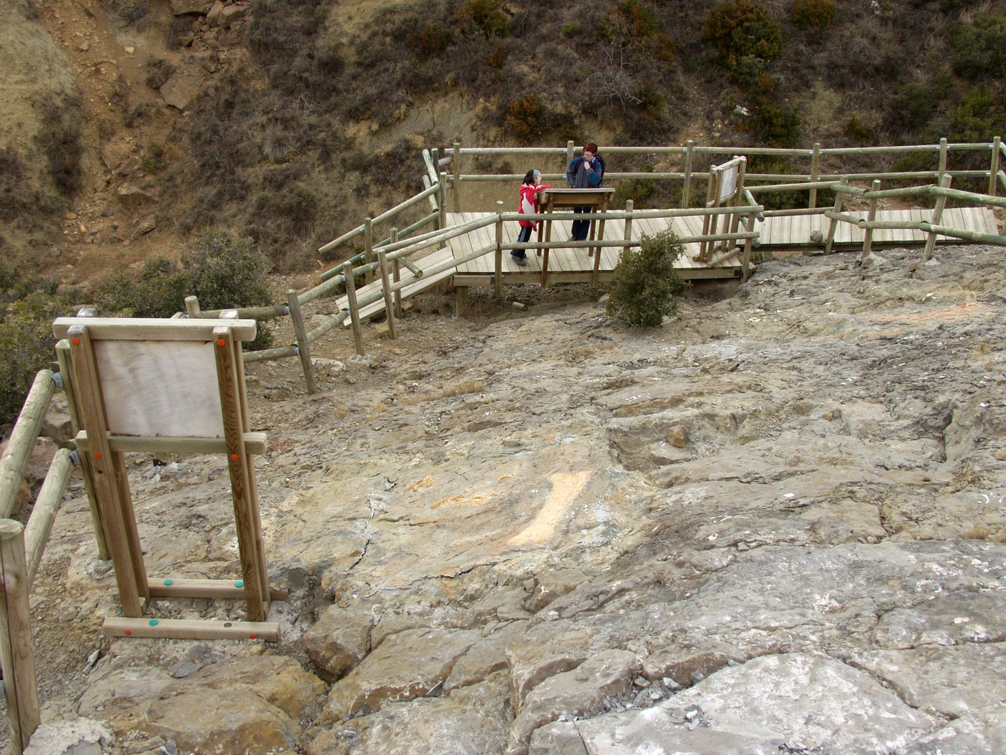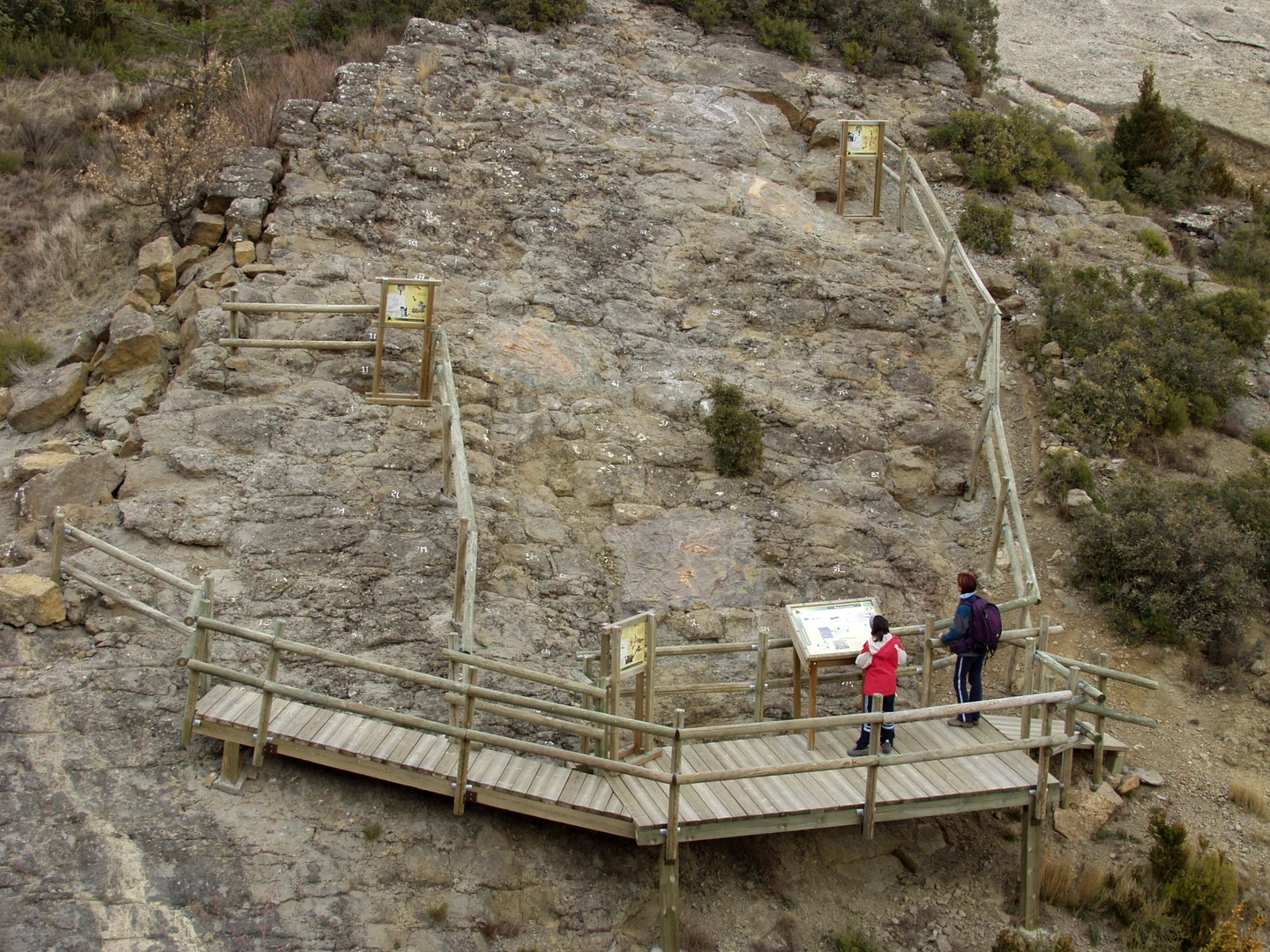 La visita parte desde el propio Museo de los Dinosaurios de Arén, donde se inicia una ruta señalizada por el barranco de L’Aiguafreda, entre bosques de robles y carrascas. A lo largo del camino, perfectamente indicado mediante flechas y paneles explicativos, se suceden hasta 12 paradas temáticas. En ellas, los visitantes pueden conocer en profundidad aspectos sobre la flora y fauna de la época, la formación geológica del entorno —principalmente las formaciones de Areniscas de Arén y arcillas de Tremp—, así como datos clave sobre la evolución del paisaje.
